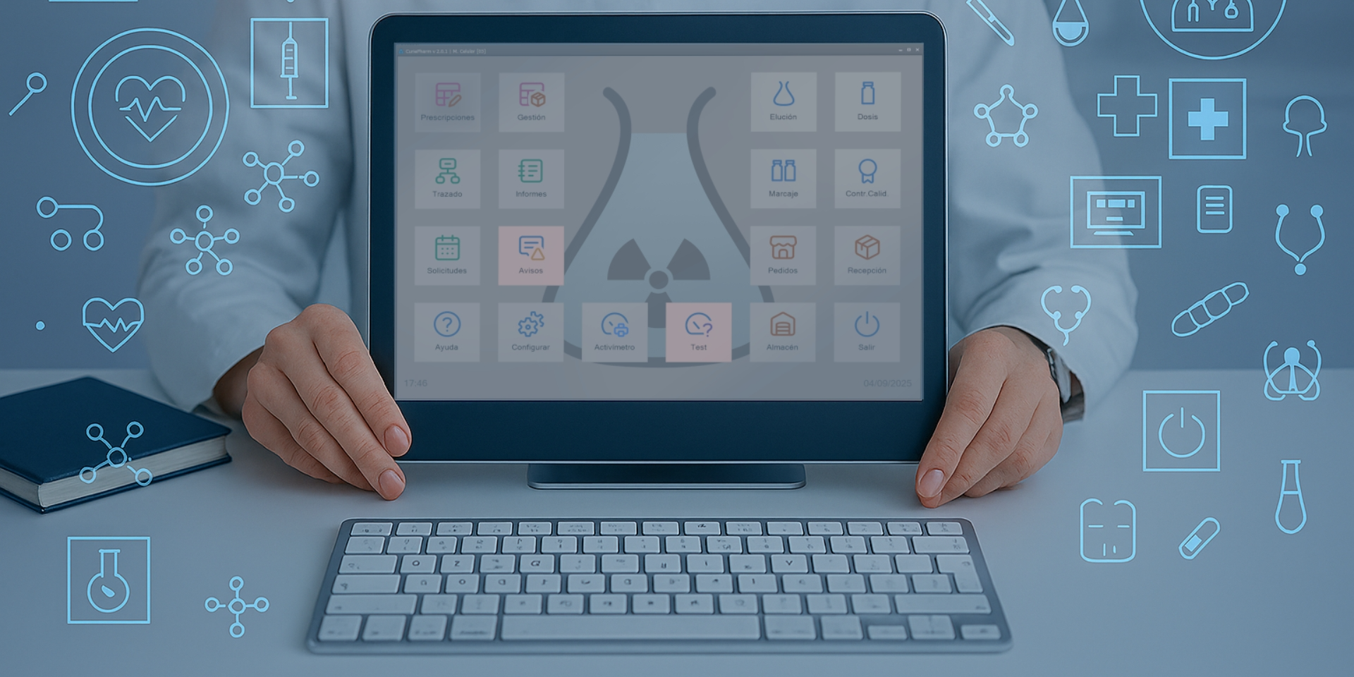 CuriePharm optimiza los procesos de Gestión de Almacén y Preparación y Aplicación de Radiofármacos. Además, también lleva el registro completo de toda la trazabilidad. Ha sido diseñado para especialistas en radiofarmacia, técnicos en radiofarmacia, médicos nucleares y auxiliares de enfermería, este sistema simplifica y mejora cada fase del proceso, desde la planificación hasta la administración de radiofármacos.